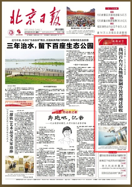 本报讯(记者 刘欢)它,可成功模拟太空-253℃的超低温,为航天飞船等航天器做飞前“体检”;它,还可用低温制冷技术将氢气液化,制成运载火箭的助推燃料……它是我国自主研发的首台万瓦级大型液氢温区低温制冷装置。4月29日,由财政部支持、中国科学院理化技术研究所承担的国家重大科研装备“大型低温制冷设备研制” 项目正式通过验收。这一成果成功打破发达国家对相关技术的垄断。