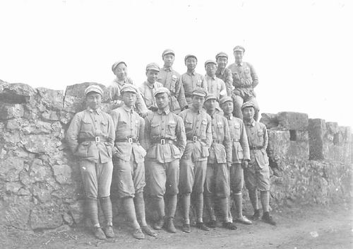 ①1938年,湘黔滇旅行团第二大队一中队一分队队员合影(前排左二为洪朝生)。