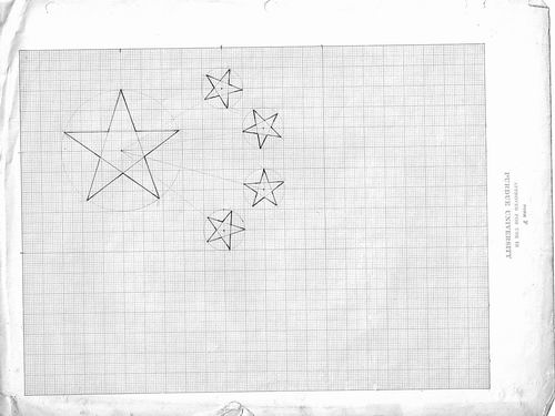 ②新中国成立时,正在普渡大学留学的洪朝生心潮澎湃,在坐标纸上精心绘制了五星红旗图样,以表达对伟大祖国的炽烈情感。