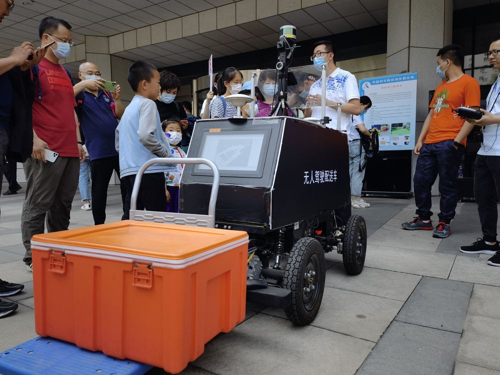 中科院自动化所展示的无人驾驶配送车(新华社记者董瑞丰 摄)