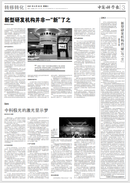 20世纪90年代末,我国在发展激光显示产业方面已经具备良好的技术基础和生产环境。在国家高技术研究发展计划、中国科学院知识创新工程的持续支持下,我国激光显示技术取得了重大进展。