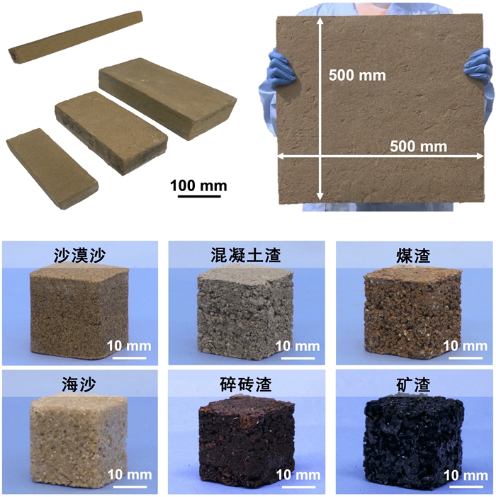 生产传统水泥基建材时,在高温焙烧过程中需消耗大量能量,并产生巨额碳排放量。发展新型低碳建筑材料,尤其是基于天然原料的低碳建筑材料,对于在建筑领域内降低碳排放量具有重要意义。近年来,国内外开展了大量的研究工作,提出多种基于天然原料的粘结剂,如生物高分子、细菌矿化粘结剂及酶矿化粘结剂等。然而目前利用各类天然基粘结剂粘结沙粒及其他固体颗粒所形成的块材强度普遍较低,难以满足实际建筑需求。