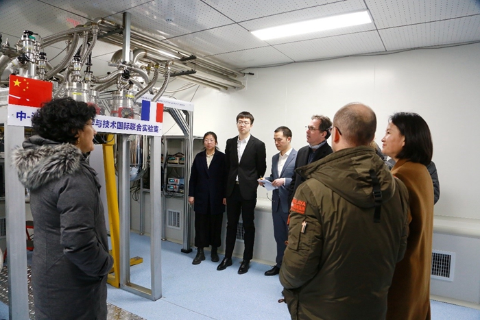 2月16日,科技部国际合作司副司长徐捷,法国驻华使馆高等教育、研究与创新部科技参赞Marc DAUMAS教授,核能参赞兼CEA中国代表Tony d'ALETTO等一行到访理化所廊坊所区,对中法低温计量科学与技术国际联合实验室开展专题调研。理化所副所长王树涛全程陪同。