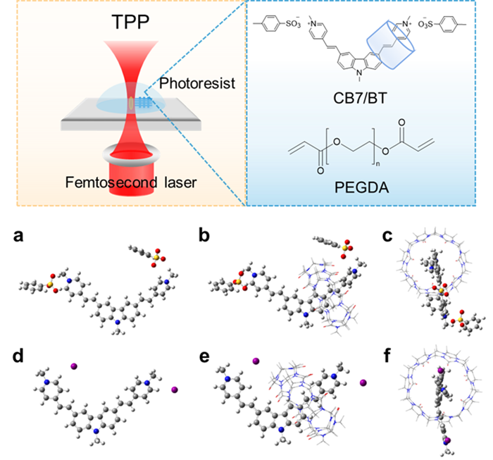 1. 双光子聚合和光敏材料前驱体示意图及量子化学模拟结果