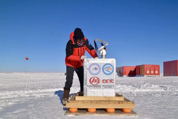 科考队员紫金山天文台任远研究员及太赫兹实验设备在南极昆仑站