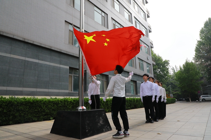 迎着春风和朝阳,护旗手贾倩倩、刘诗洋、翟浩淇、张晓杰迈着整齐的步伐,护送五星红旗入场,把国旗庄重地交到升旗手赵俊和刘强手中。伴随着雄壮激昂的《义勇军进行曲》,在场全体人员高唱国歌,肃立向国旗行注目礼,五星红旗在理化所的上空冉冉升起。