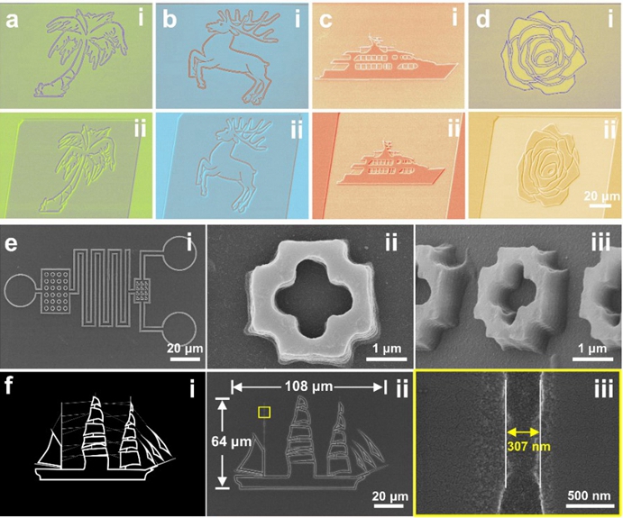 图2. 基于正胶的图案化和跨尺度微纳结构