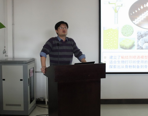 汪焰恩副教授在报告中主要介绍了生物制造技术的研究进展、关键技术以及他们在该领域的研究情况。报告涉及仿生材料及多孔介质渗透性建模,软、硬体支架技术,生物三维打印机技术三部分。由于汪焰恩副教授的工作,西北工业大学的生物三维打印技术在国内已经突破清华大学、西安交通大学和华中科技大学三分天下的局面,并在软体支架一次打印成型方面独具特色,居国内领先地位。