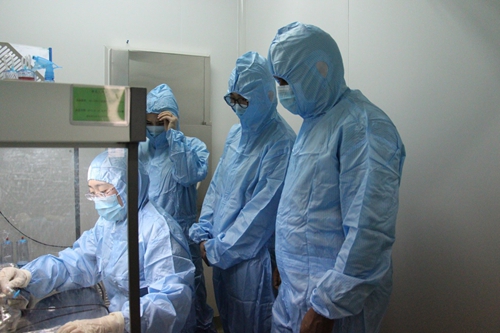 学员在理化所生物材料与应用技术研究中心实验室观看演示实验