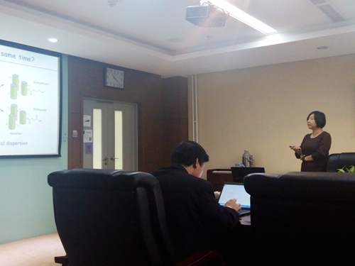 功能高分子中心副主任吴敏研究员作了报告,介绍所在课题组的相关工作。报告会后,平田悟史教授参观了功能高分子材料研究中心,并与吴敏研究员就纳米纤维素的国际/国家标准制定进行了深入讨论。