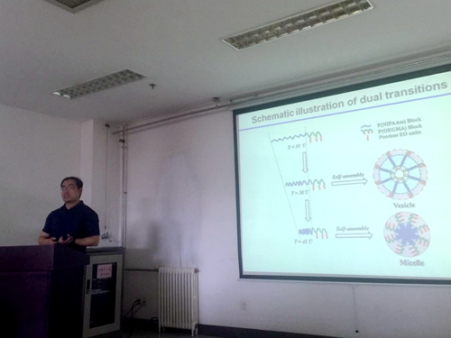 报告中,魏华教授围绕“如何高效地实现先进高分子载体材料的精准合成与功能化”这一基本科学问题,从材料的合成方法、聚合物的拓扑结构、以及材料的结构与性能之间的构效关系三个方面展开了系统的介绍。他首先介绍了利用“双头”试剂构筑结构精准的嵌段共聚物的合成策略,着重强调了其在基因转染方面的应用。在聚合物拓扑结构调控方面,利用点击化学合成了结构新颖的花状阳离子聚合物,比传统的线状阳离子聚合物具有更优异的药物控释性能。最后,报告系统总结了高分子载体材料的化学结构、拓扑结构与其性能之间的构效关系,为先进高分子载体材料的设计合成提供了理论指导。