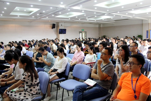 报告中,Chad A. Mirkin院士详细介绍了其课题组近年来围绕蘸笔纳米印刷术的研究成果,包括聚合物笔平板印刷、硬尖软弹簧平板印刷、扫描探针嵌段共聚物平板印刷以及光束笔平板印刷。该纳米印刷技术可实现在纳米及分子尺度上规模化、高通量、低成本印刷。报告深入浅出的介绍了如何控制印刷图案关键参数,来实现对不同阵列大小、任意图案化及图形分辨率的可控制备等,并举例说明了该纳米印刷技术在生命科学、半导体及催化领域的应用。最后,Chad A. Mirkin院士与参加报告的师生就共同关心的话题进行了深入的交流。