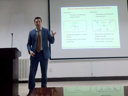 应“理化青年论坛”和中科院光化学转换与功能材料重点实验室邀请,美国密歇根大学Nathaniel K. Szymczak 教授于10月10日来理化所交流访问,并作了题为Moving Beyond the Metal: Assisted Small Molecule Activation的学术报告。
