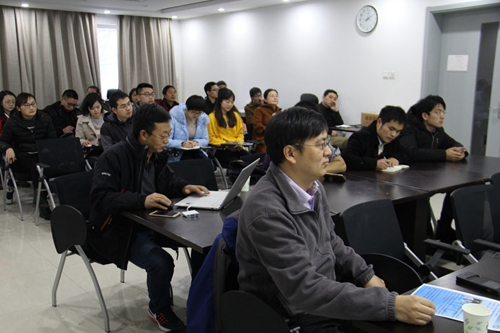 张晓兵教授首先简要介绍了荧光成像探针在重大疾病检测方面的研究背景,指出了目前荧光成像探针的不足,比如成像效果受环境干扰大、探针易扩散、难以实现原位分析和探针穿透能力弱等。随后,他介绍了小分子荧光成像探针的研究进展,包括采用荧光比策略消除环境因素干扰;采用长波长激发技术消除生物背景干扰,具有高量子产率、大stokes位移、高成像对比度等优点;设计固态发光探针提高细胞内自定位能力。随后,张晓兵列举了他们在无机纳米材料的纳米荧光探针方面的最新进展,实现了癌细胞靶向输送,胞内双模成像及基因沉默以及高效PDT治疗。他们发展的基于DNA材料的纳米荧光探针实现了细胞内mRNA成像及基因治疗等。会后,张晓兵教授和与会师生进行了深入的交流,与会师生对他精彩的报告及解答给予了热烈的掌声。