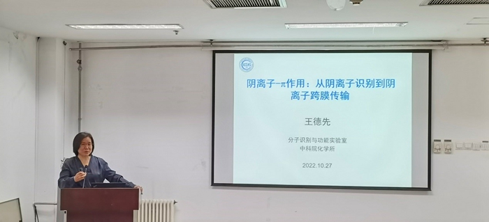 王德先研究员主要从事超分子主客体化学、分子识别与组装、新型非共价相互作用等领域的研究。报告详细介绍了其课题组基于阴离子—π作用构建的大环分子、分子笼及仿天然氯离子通道选择性孔道的“分子沙漏”等结构。