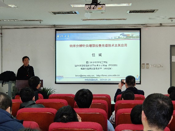 稿件来源: 发布时间:2024-02-061月25日下午,应理化所“未来青年论坛”和超分子光化学研究中心邀请,厦门大学任斌教授来到理化所进行交流,并作了题为“纳米分辨针尖增强拉曼光谱技术及其应用”的学术报告,报告会由张铁锐研究员主持。