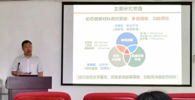 曲大辉介绍了国内外关于动态智能材料的多学科应用研究现状;分享了他们团队在分子机器的组装与功能调控、动态组装智能发光分子体系和动态聚合物材料的高效构建三个方向的最新研究成果。