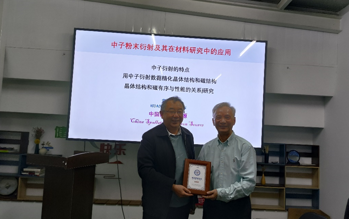 黄清镇在报告中详细介绍了中子衍射的优势以及其在材料学中的应用进展,并重点讲述了用中子衍射方法进行晶体结构和磁结构的数据精化,以及相关构效关系的研究。中子衍射技术对轻元素更敏感,可用于氢元素在结构中的位置和占有率的测定。报告重点介绍了中子衍射技术对超导化合物(Li/Fe)OH-FeSe、LaPr0.88Ce0.12CuO4+d、HgBa2Can-1CunO(2n+2)+x的晶体结构测定与分析,同时分析了BaFe2As2晶体结构、磁结构、相转变与性能研究中中子衍射的重要作用,为我们测定有序磁结构和磁性能研究提供了一种有效手段。