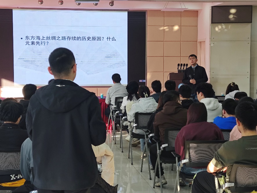 解扬首先以秦代徐福东渡为切入点,讲述了东方海上丝绸之路的发展历史,提到由汉至唐其路线不断拓展,北宋至清贸易规模随战事、海禁等形势有所变化。之后他介绍了东方海上丝路所促进的物质交流,虽然明代设市舶司限制海外贸易,但中朝官方往来带动了商贸活动。当时蓬莱水城瓷器众多,丝绸、棉布交易频繁,马匹贸易活跃,民间仍有交流。此外,他还描述了东方海上丝路所带来的文化繁荣。以书籍流通为例,1636-1803年间众多汉籍运往日本,价格各异。芦东山编纂的《無刑録》反映当时务实学风,它是对明代中叶重要政书《大学衍义补》中“慎刑宪”内容的延续与扩充。最后,他对本次分享内容做了总结:东方海上丝绸之路历史悠久,虽历经变迁,但在贸易、文化交流等方面仍发挥着重要作用,其历史经验和文化价值值得深入研究与传承。