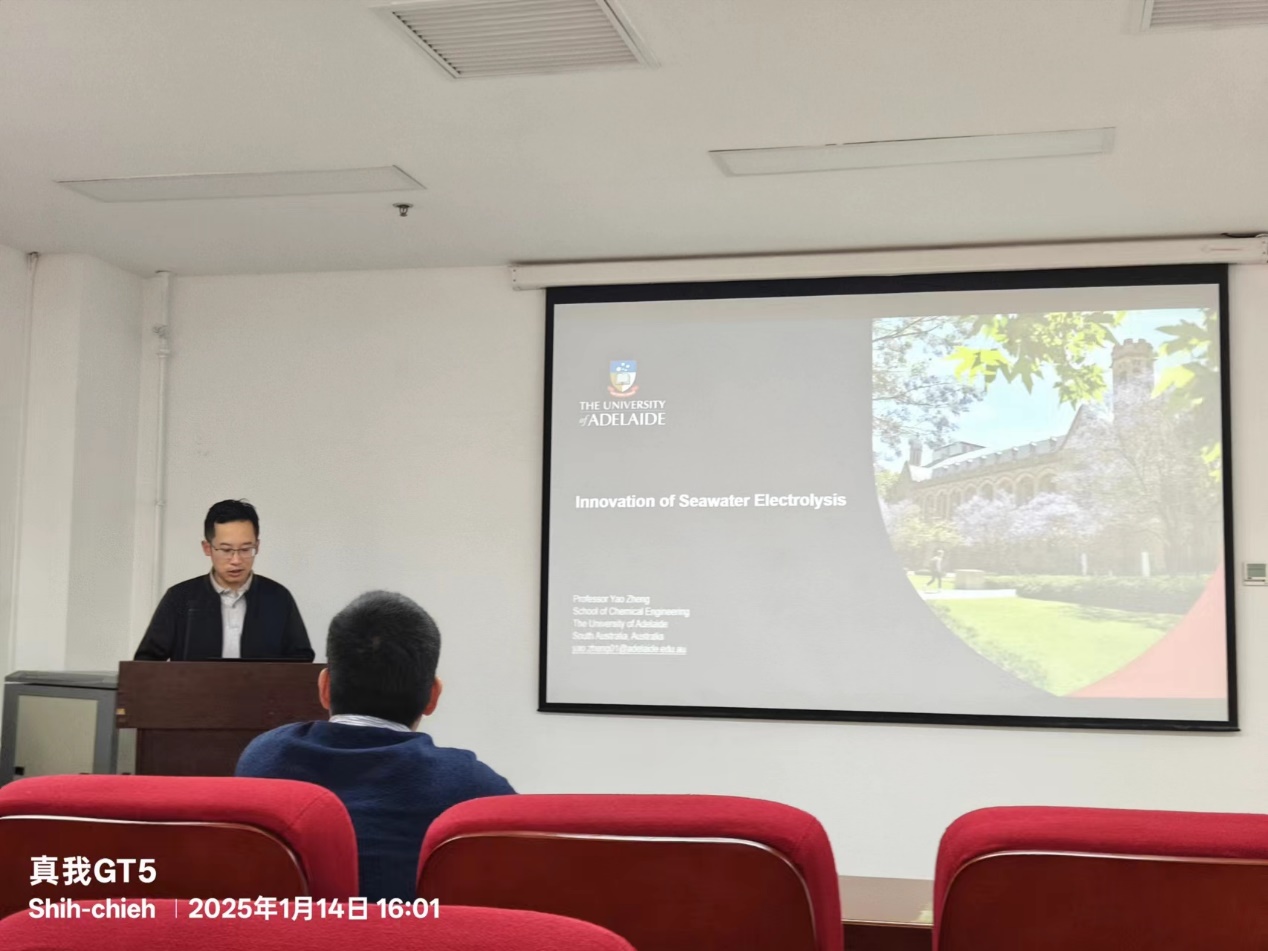 1月14日,应理化所“未来青年论坛”和中国科学院光化学转换与功能材料重点实验室邀请,澳大利亚阿德莱德大学郑尧教授来理化所交流访问,并做了题为“海水电解用于制取绿色氢气”的精彩学术报告。