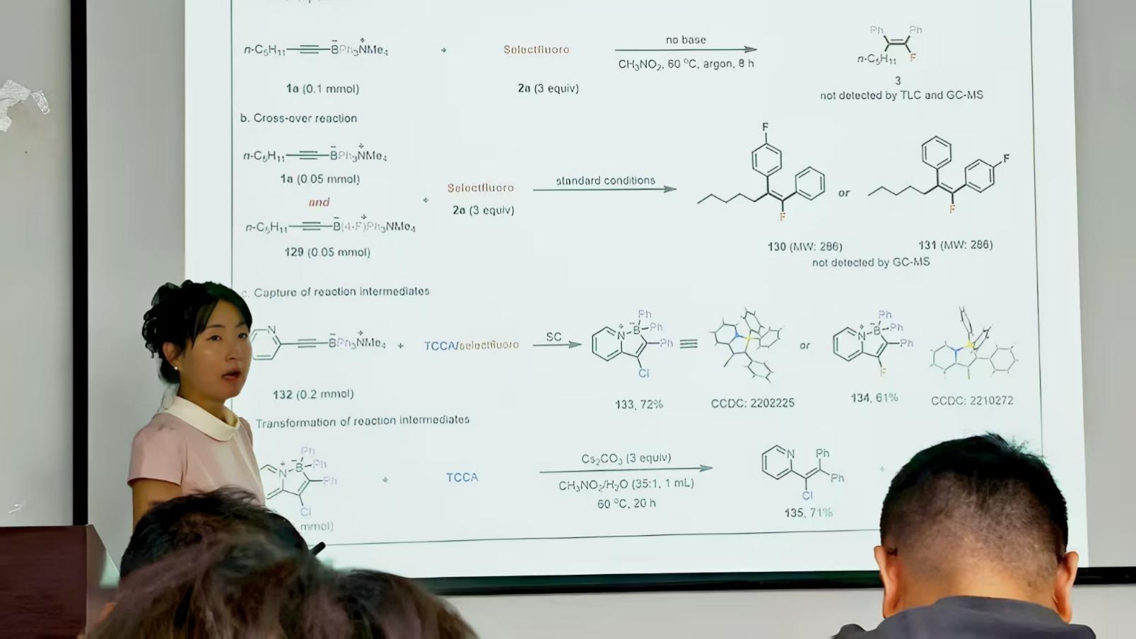 宋秋玲教授从硼原子的独特性质与应用背景出发,概述了含硼化合物在生命科学、医药研发和功能材料等领域的重要价值,系统介绍了有机硼化合物及四配位硼化学的研究进展,并深入剖析了当前四配位硼研究中存在的关键问题与挑战。随后,宋秋玲教授重点介绍了其课题组在四配位硼化合物的活化模式、反应策略以及手性构筑及应用等领域的创新性研究进展,报告内容主要包括含硼化合物的精准合成、新型含C-B轴手性有机硼的精准构建、新型手性四配位硼的构建、四配位硼远程及多重迁移新策略的开发等。