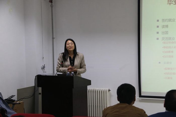 谷老师有十年高校职业咨询与职业辅导经验,擅长职业决策、性格与职业选择、职业定位等领域的咨询与辅导。报告中,谷老师首先向同学们介绍了当下高校毕业生就业创业所面临的复杂严峻形势,并提出面对机会和挑战,毕业生应树立三大意识:法律意识、维权意识和诚信意识。随后,谷老师对求职过程中的特别需要注意的问题做了详细讲解,包括毕业去向、求职时间、生源信息核对、三方协议、就业报到证、户口等方面,其中对北京市和上海市应届毕业生户档政策变化进行了深层次的解读,让同学们更加了解目前的就业形式与政策,有助于明确就业目标。此外,谷老师还从心理学角度阐述了性格与职业选择的联系,为大家解读了不同类型的性格所对应的适合职业,同时也强调测试结果具有一定的参考价值,最终的职业选择还是要结合自己的现实条件,慎重择业。在简历制作和面试技巧的内容上,谷老师强调求职意向在简历中尤为重要,应当尽可能明确和集中、切忌空泛,针对求职意向来完善自己的简历。针对结构化面试、无领导小组讨论面试、情景面试等不同形式的面试,提出了相应应试技巧,提醒同学们提前了解去面试的机构或者企业的情况,为面试做好充分的准备。最后,谷老师还分享了很多获取职业信息的渠道,便于同学们了解最新就业资讯。整个报告过程中,同学们与谷老师积极互动,现场气氛热烈,谷老师对同学们提出的问题也都一一进行了详细解答。