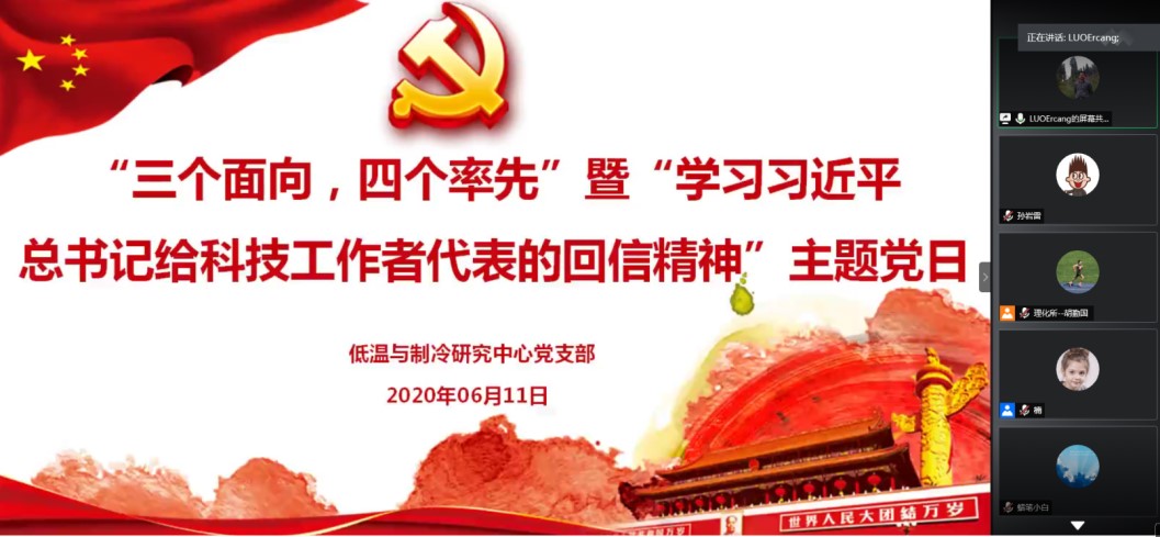 6月11日,低温与制冷研究中心党支部开展“我与‘三个面向’‘四个率先’”主题党日活动暨学习“习近平总书记给科技工作者代表的回信”精神。活动由胡勤国同志主持,共有近30名党员在线参与。