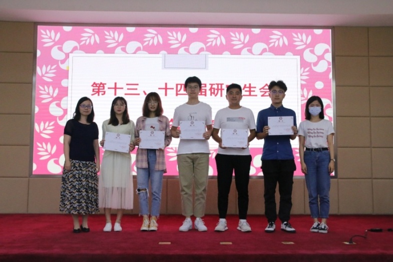 会上,全体师生共同观看了由研会宣传部精心制作的全年工作纪念视频,同时研会主席团成员对过去一年的工作进行了梳理与总结,回顾研会一年来举办的各项活动。本学年的研会活动充分满足所内师生需求,受到了广大师生的喜爱,同时研会结合不同阶段疫情现状,开展多项线上活动,丰富所内师生业余生活。随后,第十三届研会主席刘旺对研会整体工作进行总结,并分享了自己的工作经验,为今后研会工作的开展提供良好借鉴。教育处丁黎、张谨、代丹、邱波、陈晨五位老师对第十三届研会工作成果表示充分肯定,同时鼓励在场竞选同学再接再厉,进一步打造所内精品活动。最后五位老师为第十三届研会全体成员颁发荣誉证书,表彰各位成员一年来工作所取得的优异成绩。