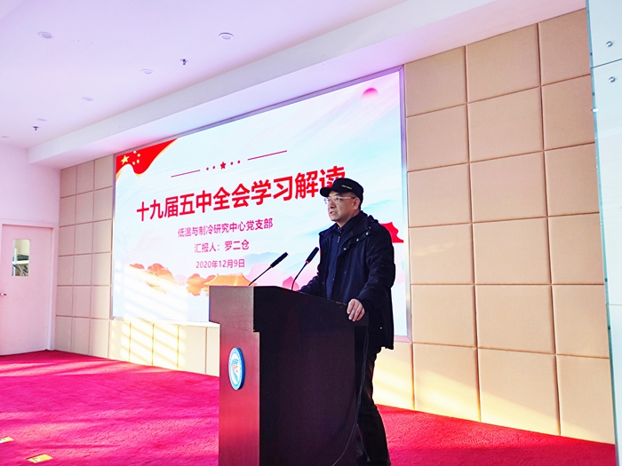 罗二仓副所长作了十九届五中全会精神的解读报告。他从五中全会概况、决胜全面建成小康社会取得的决定性成就、我国发展环境面临的深刻复杂变化、到2035年基本实现社会主义现代化远景目标、“十四五”经济社会发展主要目标、提出的12项重要举措等六个方面对十九届五中全会进行了深刻解读。罗二仓同志表示,作为科研工作者,了解国家重大方针政策具有必要性和重要性,他鼓励中心的所有同志作为科研工作者,要认真学习贯彻全会精神,勇于开拓,勇于创新,在全面建设社会主义现代化国家的征程上做出应有的贡献。