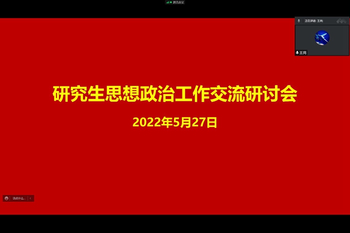 王岗处长代表国科大学生处表示今年以来全国各地疫情不断,各研究所都面临着学生封闭管理状态,封闭管理后国科大和研究所压力都很大,不仅仅要关注学生的基本诉求,更要关注学生的思想动态。思政工作常做常新,希望通过召开这样的交流研讨会来共同提高思政工作的方式方法。