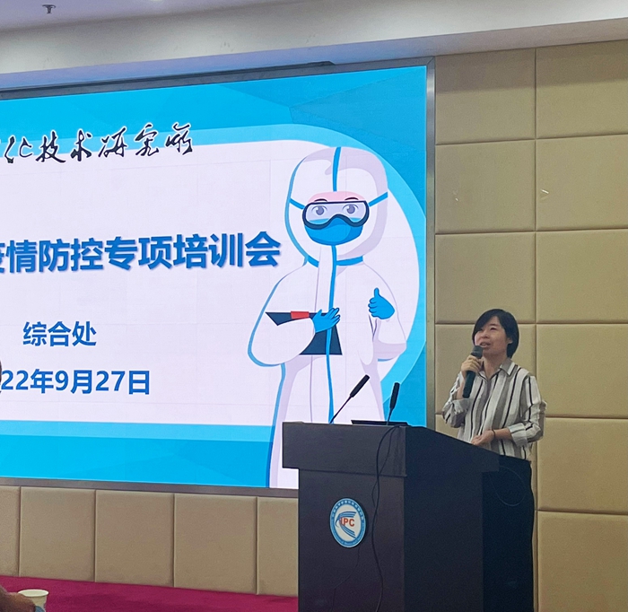 为进一步宣贯《新型冠状病毒肺炎防控方案(第九版)》,提升疫情常态化防控和突发疫情应对处置能力,传达落实中科院办公厅对全院疫情防控工作专项培训会精神,理化所综合处于9月27日组织疫情防控专项培训会,邀请了海淀区疾病预防控制中心副主任邢彦作报告。理化所党委副书记、纪委书记刘新建,副所长王雪松,所疫情应对工作小组成员,各部门疫情联络员40余人参加了会议。会议由综合处副处长李婉月主持。