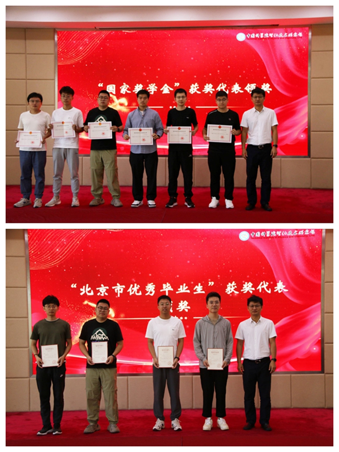 首先在407会议室举行了年度研究生颁奖典礼,教育处主管陈晨对2022-2023学年研究生获奖情况进行通报,教育处处长丁黎为获得国家奖学金、中国科学院院长特别奖、院长优秀奖、国科大三好学生标兵以及优秀学生干部等奖项的获奖代表颁发了荣誉证书,并与全体获奖代表合影留念。2023年中国科学院院长特别奖获得者辛伟闻同学代表获奖学子发言,他结合自身成长学习经历,鼓励新入所的师弟师妹们在未来的科研生活中保持热情与主动性,不断学习并善于总结,在工作与生活中寻求平衡,祝愿大家回所后一切顺利。