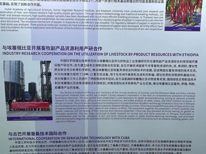 11月6日至7日,首届“一带一路”科技交流大会在重庆举行。作为大会重要活动之一,共建“一带一路”科技创新合作十年成果展同期举办,展览主题为“共建创新之路,同促合作发展”,全方位展示十年来“一带一路”科技创新合作成效。理化所项目“与埃塞俄比亚开展畜牧副产品资源利用产研合作”入选该成果展。