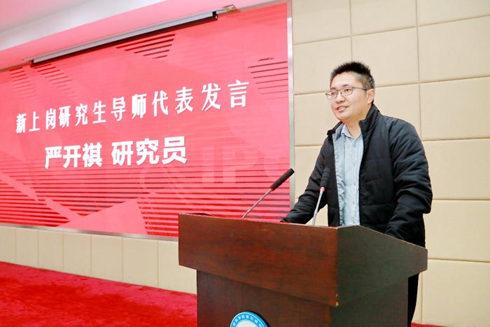 随后,新上岗研究生导师代表严开祺研究员上台发言,他表示要向获奖人看齐,做学生满意、研究所放心的研究生导师。