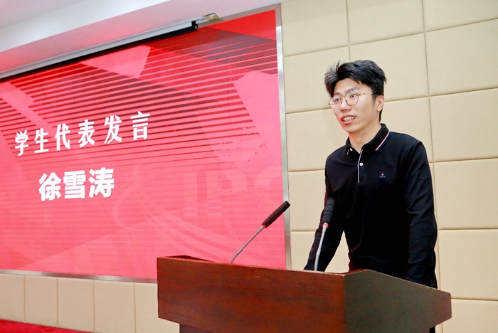 2018级直博生徐雪涛同学作为学生代表发言。他表示在自己的心目中,最喜爱的导师不仅有着深厚的学术造诣,还有着高尚的师德与人格魅力。导师不仅传道授业解惑,也在生活中的各个方面引导着学生成长。学生应以导师们为榜样,努力成长,不辜负导师们的期望。