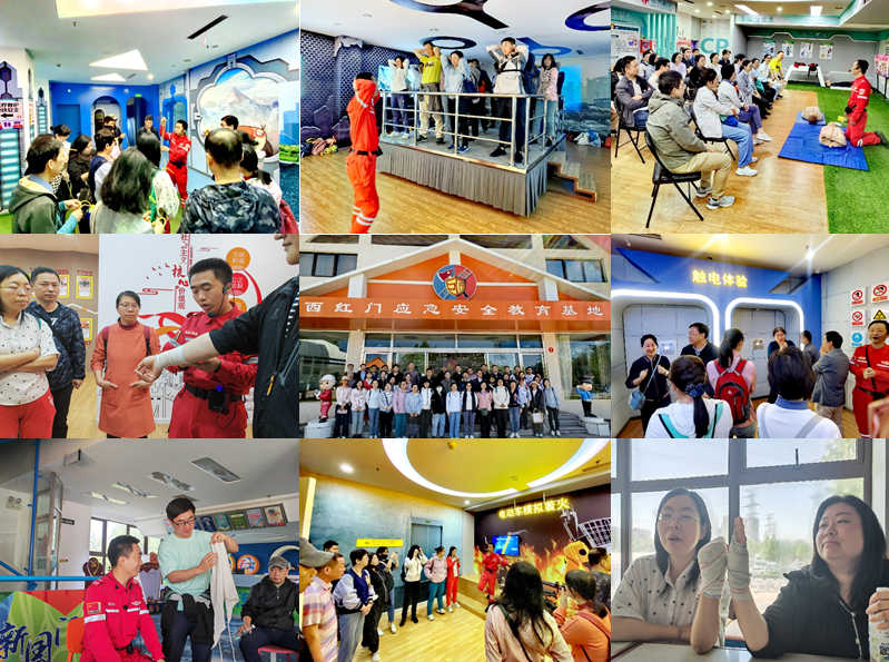 5月11日,参训人员来到西红门应急安全教育基地,参加心肺复苏应急救护、模拟电动车起火、地铁逃生、烟雾走廊逃生、地震避险、消防联动演示、结绳训练、灭火器实操等不同场景的安全知识技能实操培训,大家认真聆听教练讲解、积极参与上手体验,取得了良好的培训效果。