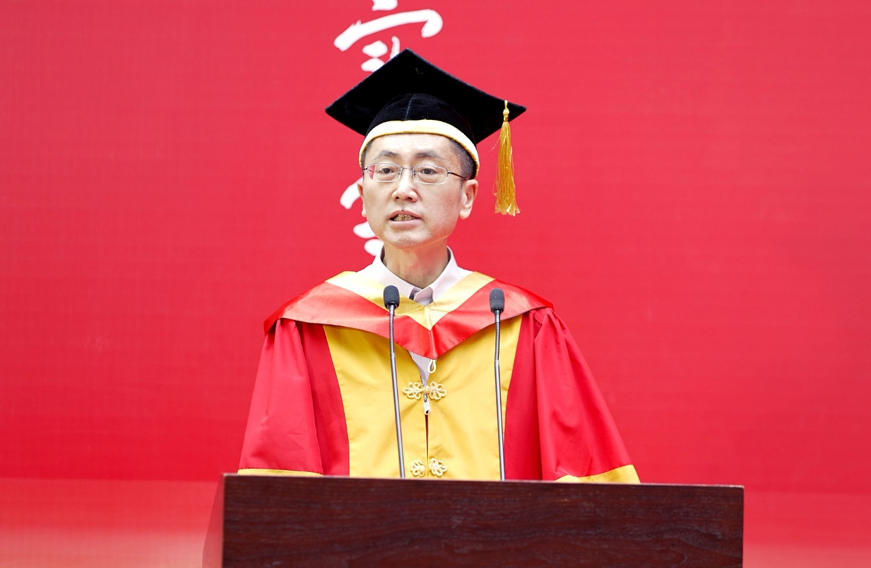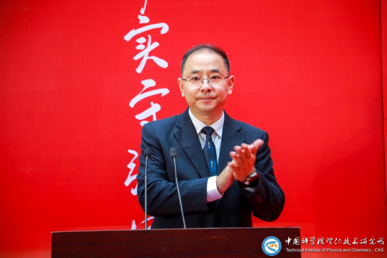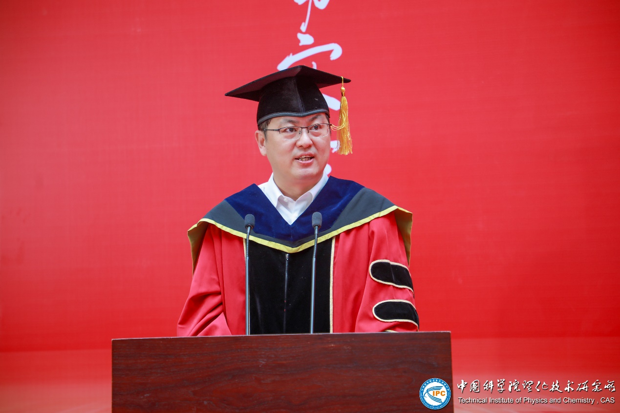 王雪松首先致辞。他代表理化所全体师生,向获得学位的研究生表示祝贺,向毕业生父母和导师致以衷心的感谢和敬意。王雪松希望同学们牢记“自强、务实、和谐、创新”的所训,朝着向科技制高点、创新制高点奋力攀登,在国家实现高水平科技自立自强和建设科技强国的实践中谱写人生华章。勉励毕业生以“自强”为目标,涵育“家国情怀”;以“务实”为准则,练就“能力本领”;以“和谐”为追求,培养“协作意识”;以“创新”为导向,攀登“人生制高点”。