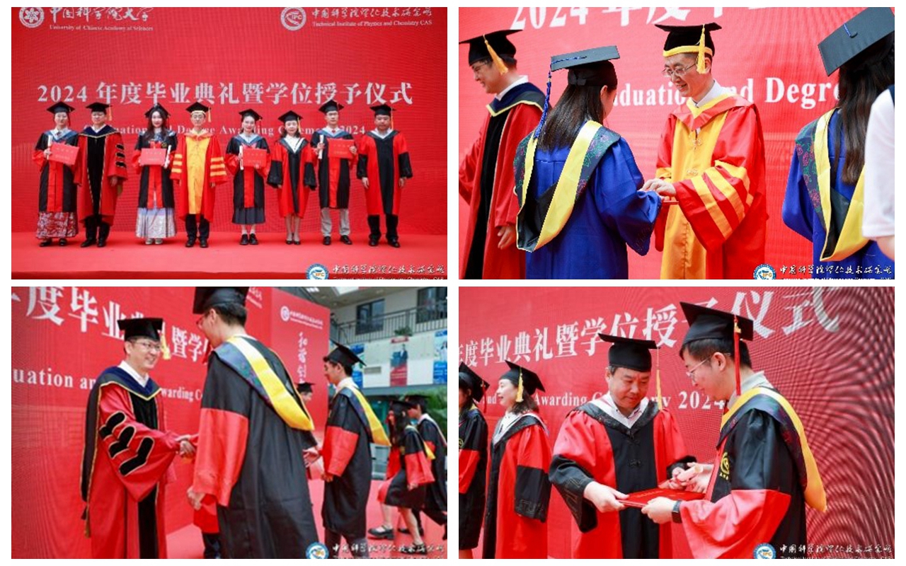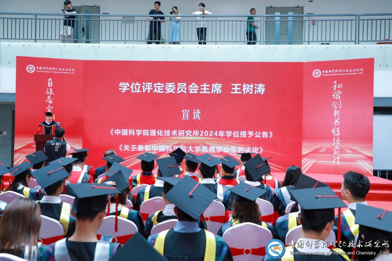 随后,王树涛宣读《中国科学院理化技术研究所2024年学位授予公告》和《关于表彰中国科学院大学优秀毕业生的决定》,王雪松为7位优秀毕业生颁发证书。