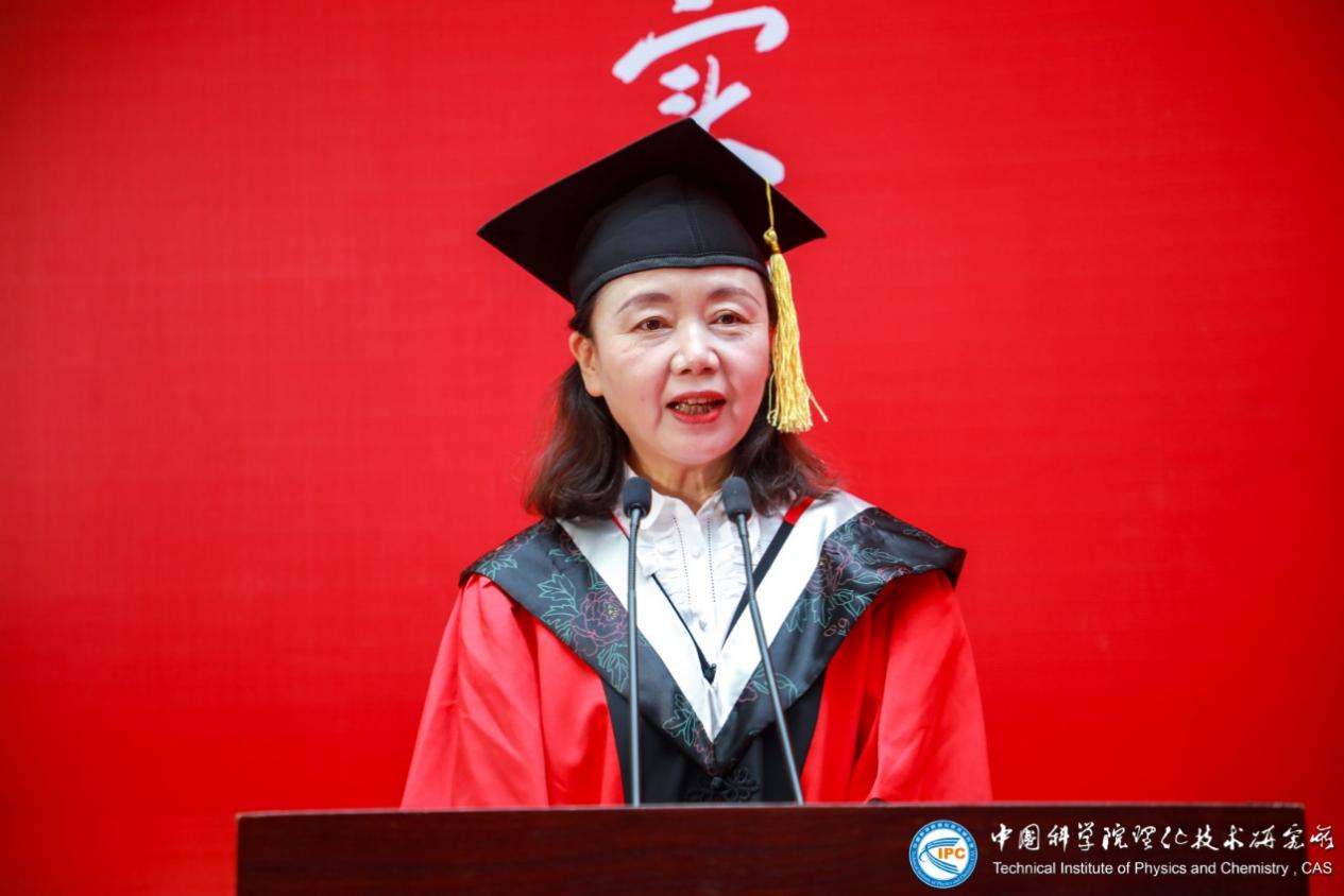 吴骊珠院士作为导师代表发言,她首先代表理化所全体导师,向即将迈入新征程的毕业生致以最真诚的祝贺,她表示,所有克服重重困难完成学业的毕业生都是导师的骄傲和理化所的光荣。勉励毕业生以光明之心热爱生活,迎接美好未来;胸怀强国之志,勇挑强国重任,成为真正的“强国一代”;继续发挥钻研精神,脚踏实地,主动作为,把科学家爱国奉献、求真务实、勇攀高峰的精神融会贯通到工作中去,在实干中创造价值,成就充满光荣与梦想的新征程。