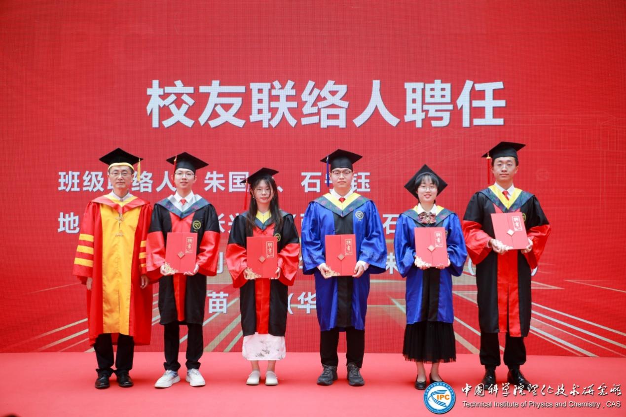 毕业代表着在校生到校友身份的转换,研究所确定5位毕业生为2024届校友班级联络人和地区联络人。王雪松为联络人颁发聘任书,希望通过校友联络人加强校友群体互动,助力理化所和校友共同进步、长远发展。