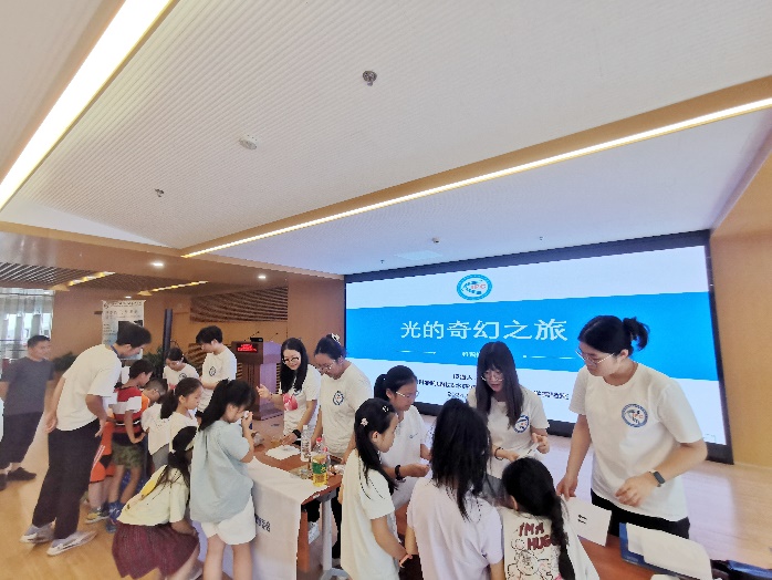 时值暑假期间,中国科学院网络中心托管班的老师和同学们成为此次科普巡演的首批观众。通过生动有趣的科学实验展演和互动体验,孩子们了解了关于光的知识,激发了孩子们对科学的浓厚兴趣,活动现场气氛热烈。