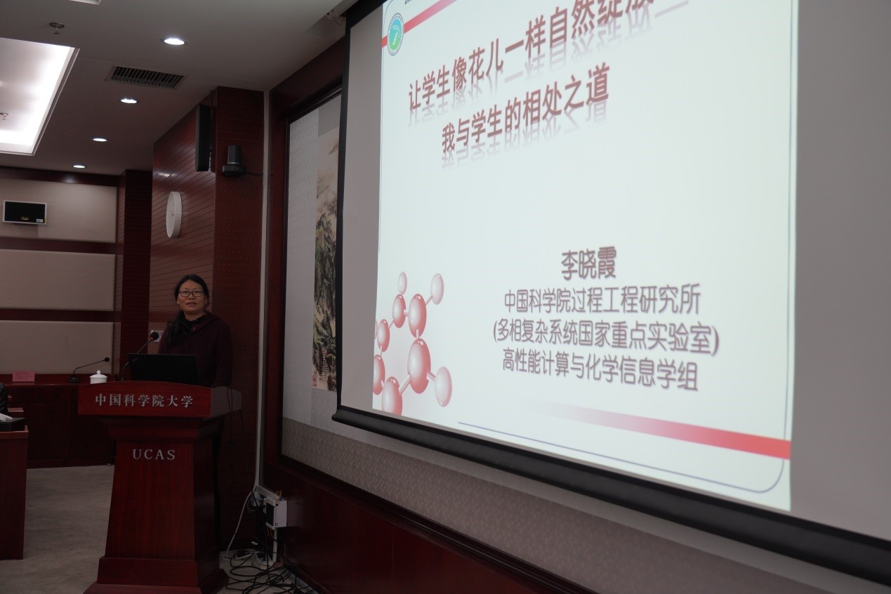 李晓霞作了题为《让学生像花儿一样自然绽放——我与学生相处之道》的报告。她分享了自己二十余年指导研究生的经验,指出与学生相处,要力求遵循研究生培养规律,尽力做到爱护、尊重、信任学生,让他们像花朵一样自然而然地绽放。