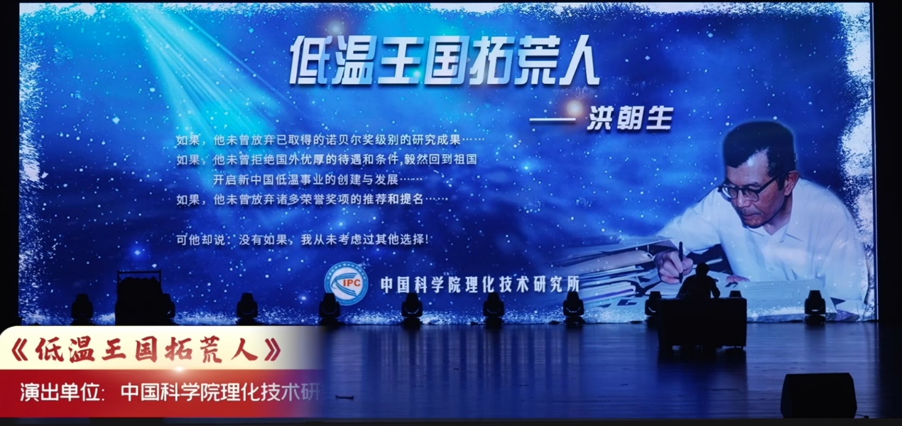 9月5日上午,为弘扬老科学家精神,培养爱国主义情怀,教育处组织新入所研究生观看了由理化所编排、学生主演的话剧《低温王国拓荒人——洪朝生》。该话剧选取了洪朝生先生归国、工作等场景,展现了洪朝生先生追求真理、求真务实的品质。话剧最后,同学们走向台前,和洪先生隔空相望,表达传承老科学家精神的决心。这场话剧,不仅是对洪朝生先生开创我国低温物理事业的深切致敬,更让同学们深切感受到老一辈科学家的家国情怀和科研坚守。