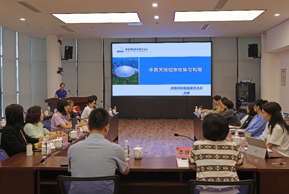本次活动安排了两个专业讲座。首先,国家天文台主管FAST项目档案工作的刘娜研究馆员以《中国天眼档案收集与利用》为题,给大家分享了项目建设和实施过程中各类型档案收集、利用的经验和心得。随后,空天信息创新研究院的办公室副主任王小梅以《策划驱动·资源聚合·传播增效》为题,介绍了空天院档案资源开发利用方面的实践与探索。与会人员就讲座内容和实际工作中遇到的问题进行了广泛探讨和交流。讲座后,大家实地参观了FAST望远镜现场,并结合大装置实物进一步了解了FAST档案中六大系统的具体分类、位置和建设情况。