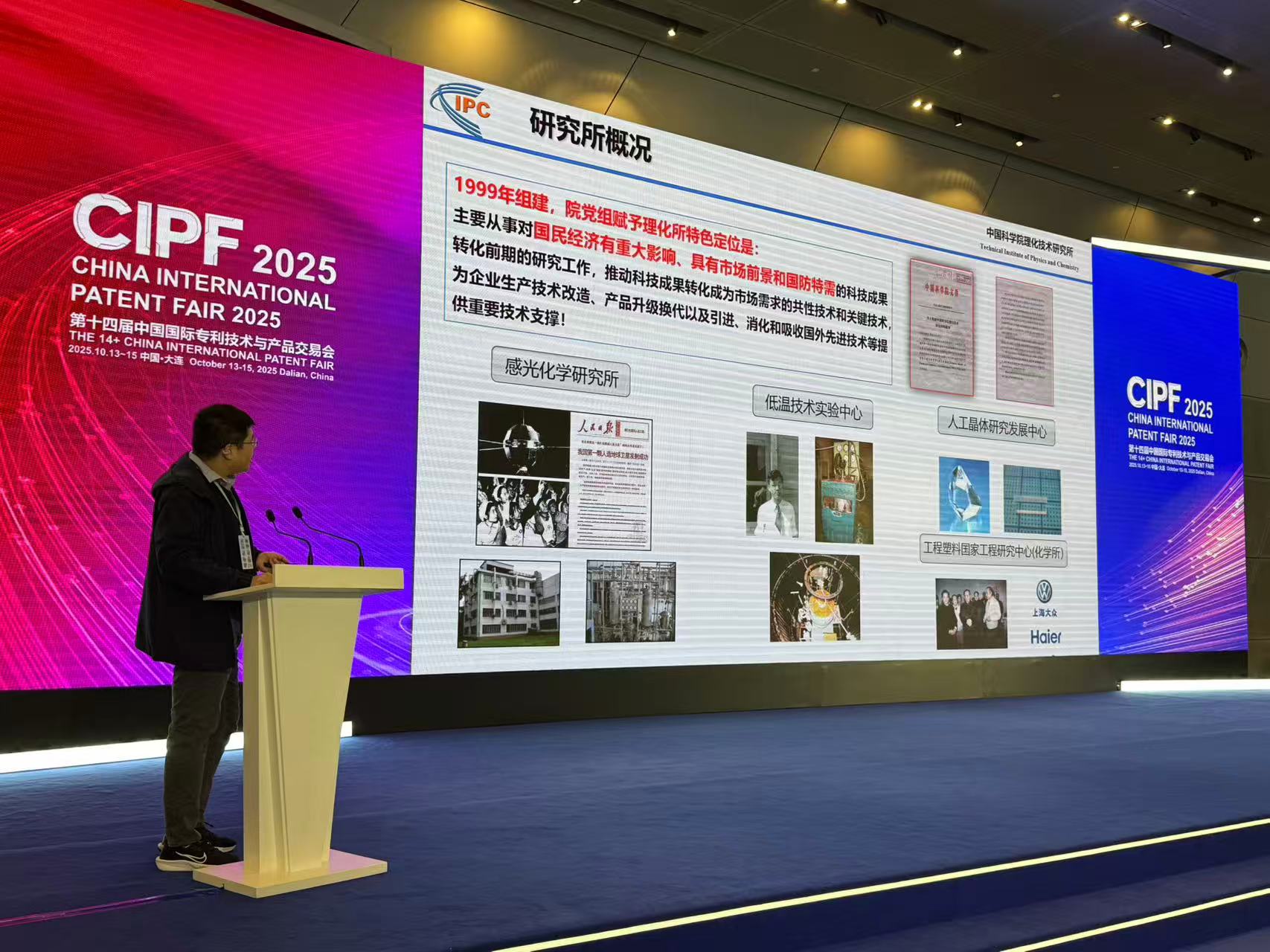 10月13日,由中国国家知识产权局主办的第十四届中国国际专利技术与产品交易会(简称“专交会”)在辽宁大连开幕,本届专交会以“专利转化运用 赋能创新发展”为主题。理化所受邀参加本届专交会开幕式、重点产业与专利技术展示和科技成果发布系列活动。