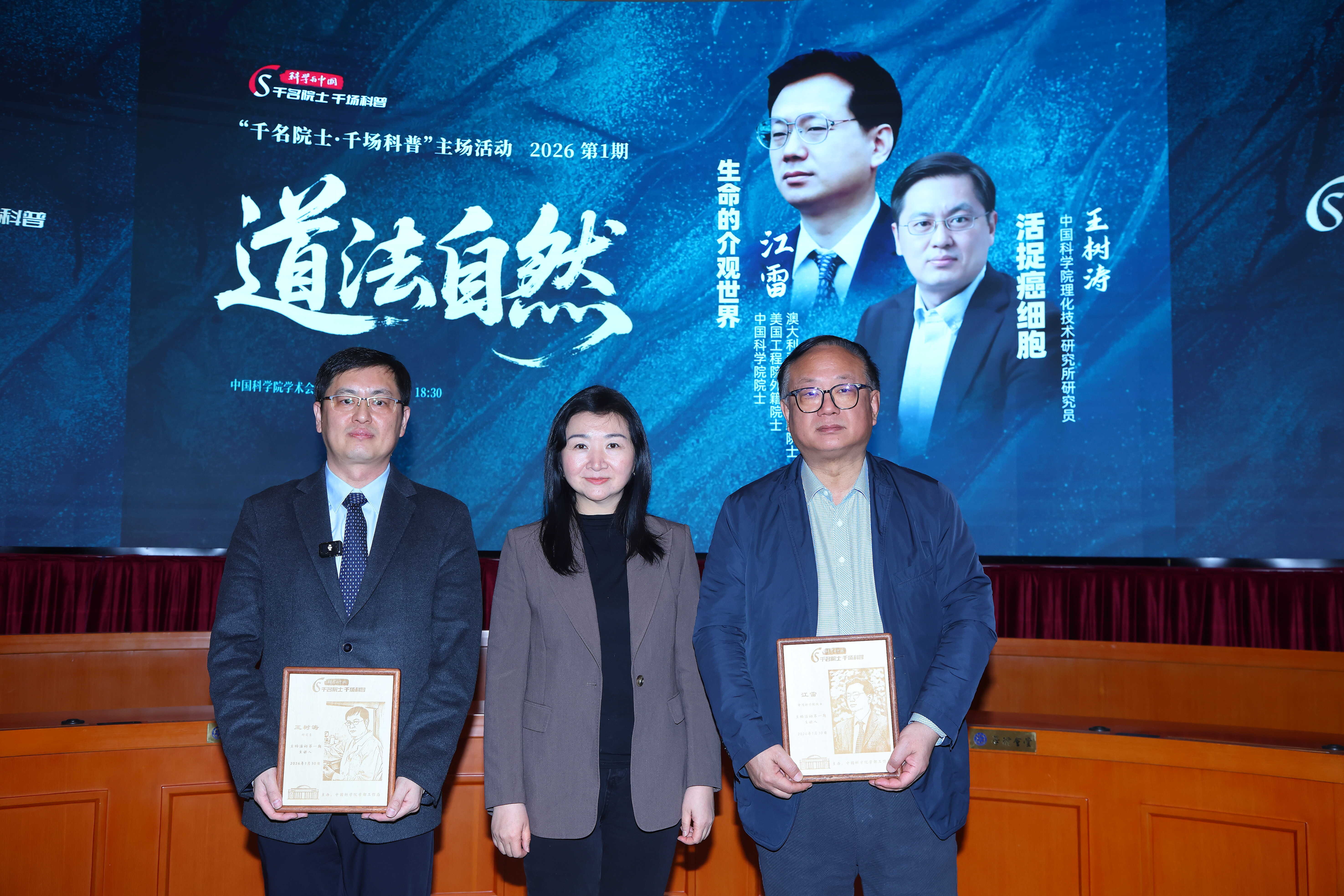 1月30日,“科学与中国——千名院士·千场科普”2026年主场系列活动在中国科学院学术会堂拉开帷幕。中国科学院院士江雷、中国科学院理化技术研究所研究员王树涛受邀主讲,为现场300余名公众带来了一场兼具思想深度与通俗表达的前沿科普讲座。
