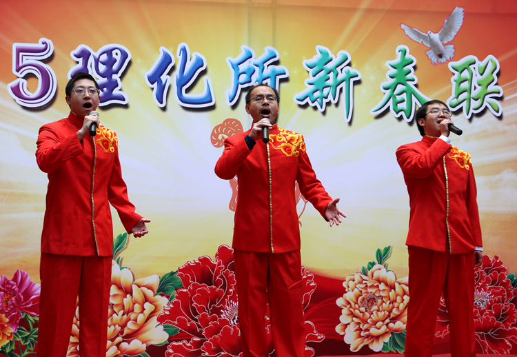 精彩纷呈的文艺演出在理化所三位好声音洪国同研究员、刘世雄处长和李昊同学的一曲《节日欢歌》中正式开始。两名年轻的“央视范儿”节目主持人朱世慧、李东辉闪亮登场,带大家进入到深情脉脉和激情澎湃的节目之中。
