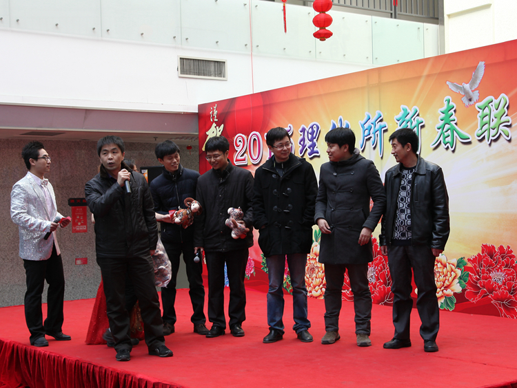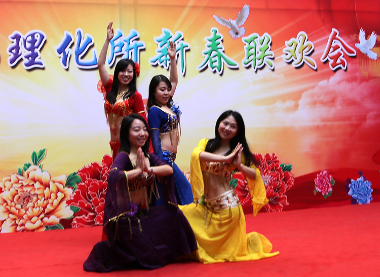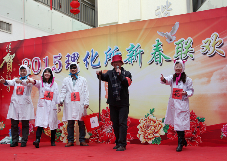 激情四溢的爵士舞和肚皮舞表演,使联欢会的热度逐渐升温,展现出年轻人的热情洋溢和似火青春。亦动亦静、刚柔并济的太极拳表演,展现了中华文化的深厚底蕴。联欢会当然也离不开幽默的语言类节目,喜羊羊和他的小伙伴们在“村长”黄勇书记的带领下赶来贺岁,小羊们利用理化所的高科技成果,成功打败了灰太狼,并送给大家温馨的羊年祝福。几名年轻人在《卖狗》的过程中,演绎了欢乐与智慧,让大家在欢声笑语中,体味着深深的思索。联欢会的压轴之作是理化所摇滚王子黄贵文带来的劲歌《无地自容》,不仅让大家感受都了如火的热情,也预示着理化所火热的明天。