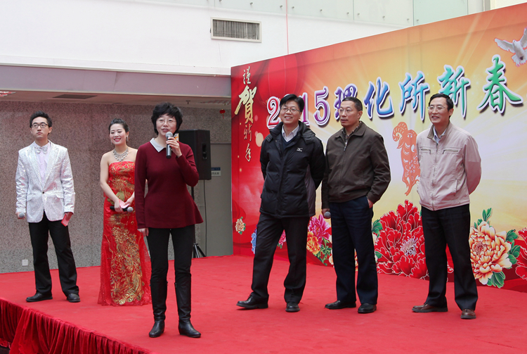 李嫕研究员和大家一起回顾了理化所2014年取得的多项成就,并代表理化所工会委员会向全体工会会员、向发挥余热的离退休老同志们、向刻苦求学的莘莘学子们,致以诚挚的节日问候。随后,张丽萍所长、黄勇书记、汪鹏飞副所长、雷文强副所长、刘新建副所长上台,为全所人员送上节日的祝福。张丽萍所长代表所党政领导班,向过去一年里为理化家园付出辛劳和汗水的大家表示衷心的感谢,并祝愿在新的一年里,小朋友健康快乐地成长,年轻朋友拥有更多浪漫时光,中年朋友放松心情,离退休老同志尽情享受美好生活,祝福理化所健康发展、蒸蒸日上,祝福伟大的祖国更加繁荣富强。