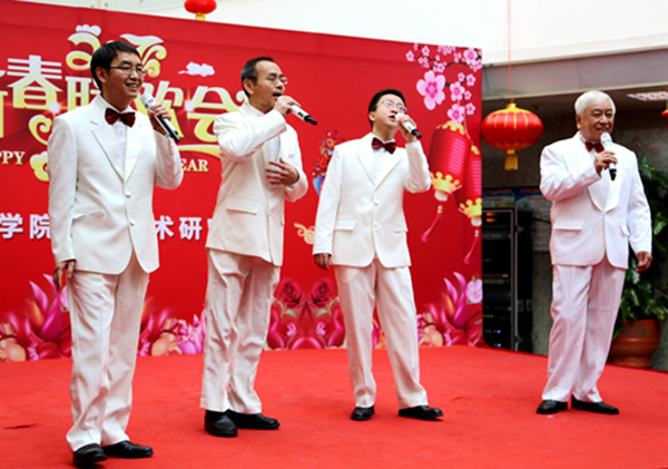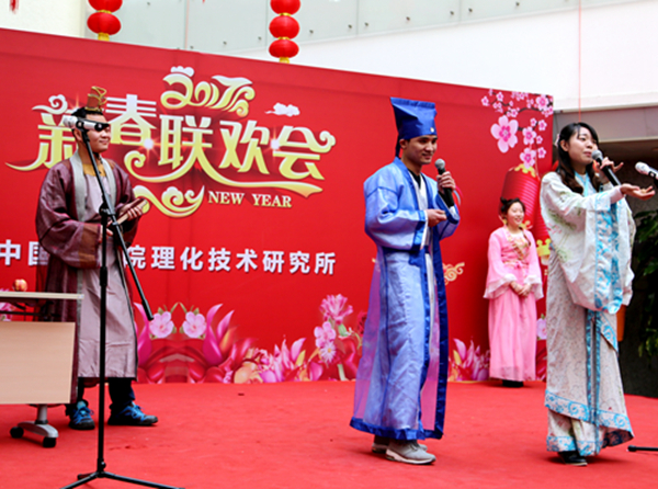 所领导班子以一首配乐诗朗诵《理化颂歌——献给奋进的理化人》表达对理化人的深深谢意,感谢每一位理化人,胸怀大局,勇于担当,爱岗敬业,拼搏共进。工会主席李嫕研究员代表所工会向全体会员表达了谢意,感谢大家为理化所科技创新做出的贡献,感谢一年来大家对工会工作的大力支持,更感谢分工会主席为创建理化和谐大家庭的辛勤付出和默默奉献。理化所实力派歌唱组合洪国同和张梅英的一曲《感恩》,表达了理化人一起携手走过的春夏秋冬,表达了理化人对理化大家庭的深深眷恋。K歌大赛的新晋冠军孙维泽带来的独唱《微风细雨》,将理化所微风细雨般的关怀用深情的歌声款款表达……